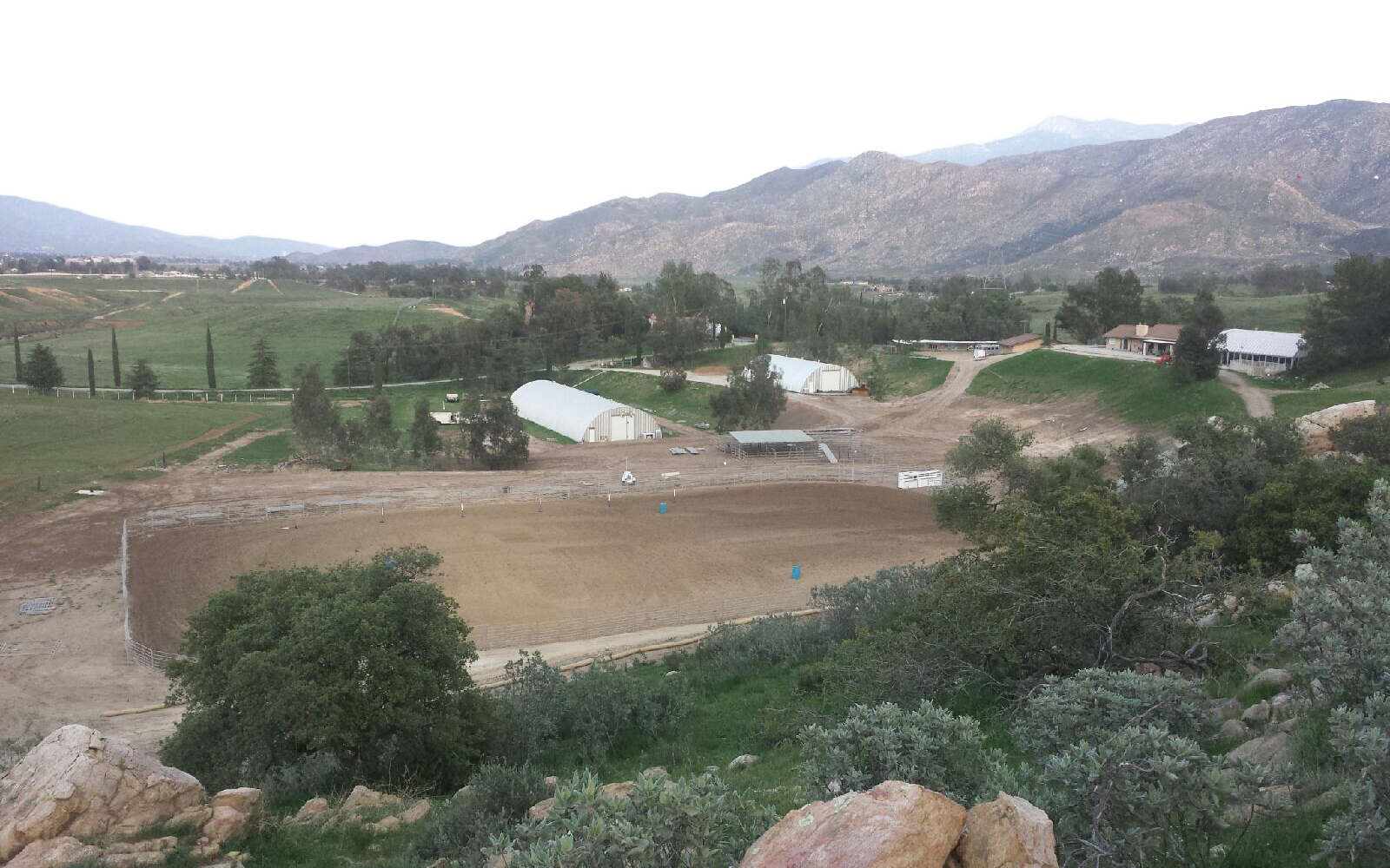 Our ground is excellent; groomed with the black widow groomer. We have a 50 ft round pen, ample trailer parking, and beautiful views of the San Gorgonio Mountains.